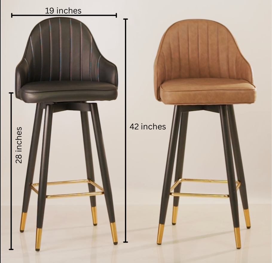 This modern 360° rotatable bar stool come up with very unique design and little higher than usual chair. This chair use for bar area, Office area and also for lobby area. This chair made up with steel , grey foam and reccine. This high quality rexine material always bring you a comfortable seating experience.